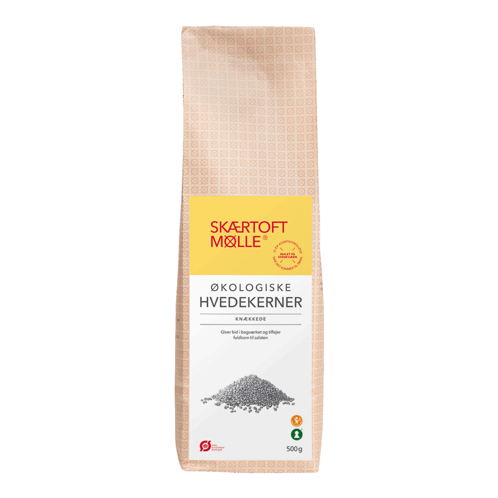 Alle Skærtoft Mølles produkter er økologiske, og alt vores mel er malet på langsomtgående stenkværne. Vi vælger at bruge denne traditionelle metode, fordi den skånsomme stenformaling bevarer det bedste fra kornet. Det er godt for smagen, for bageevnen – og for dig.
