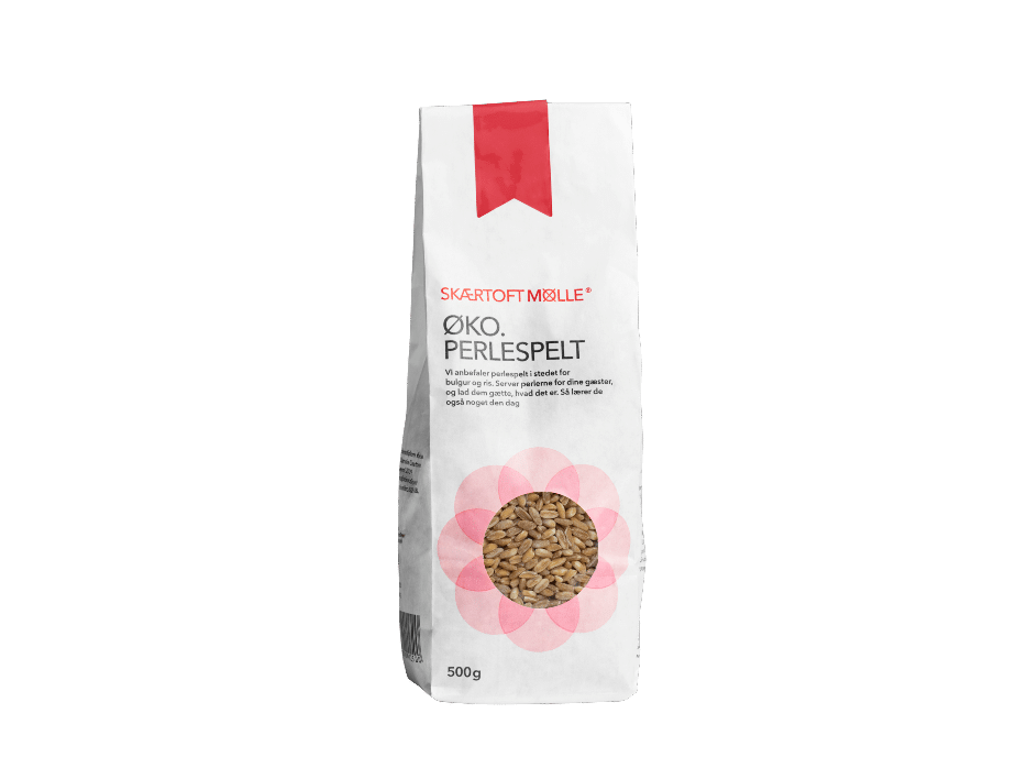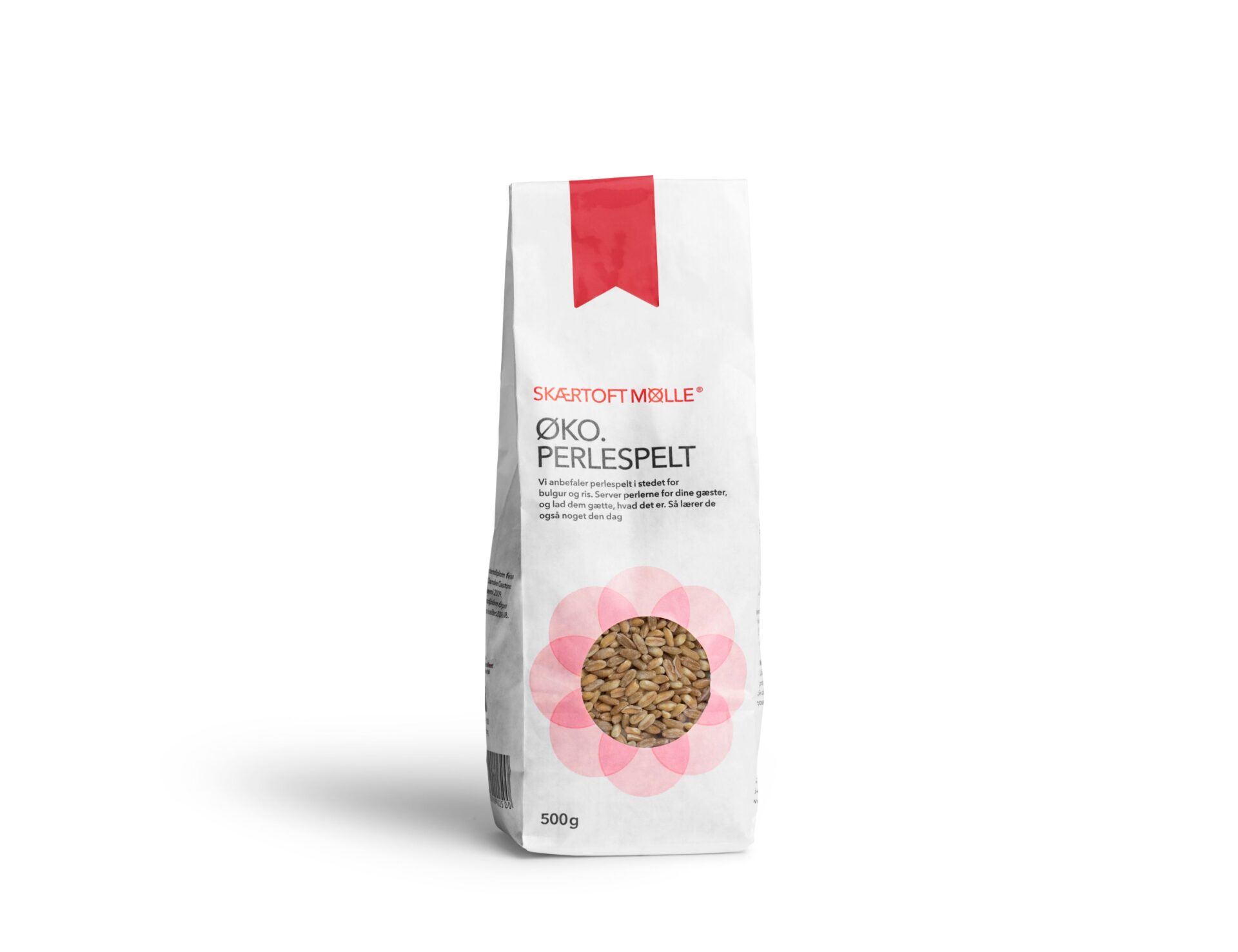 Perlespelt er hele korn, hvor den yderste grove skal er delvist poleret af. Tilbage er den bløde kerne. Perlespelt kan bruges i en mange forskellige retter, og er et godt alternativ til pasta og ris. Det kan også bruges i salater, risotto, grød, bagværk og meget andet.