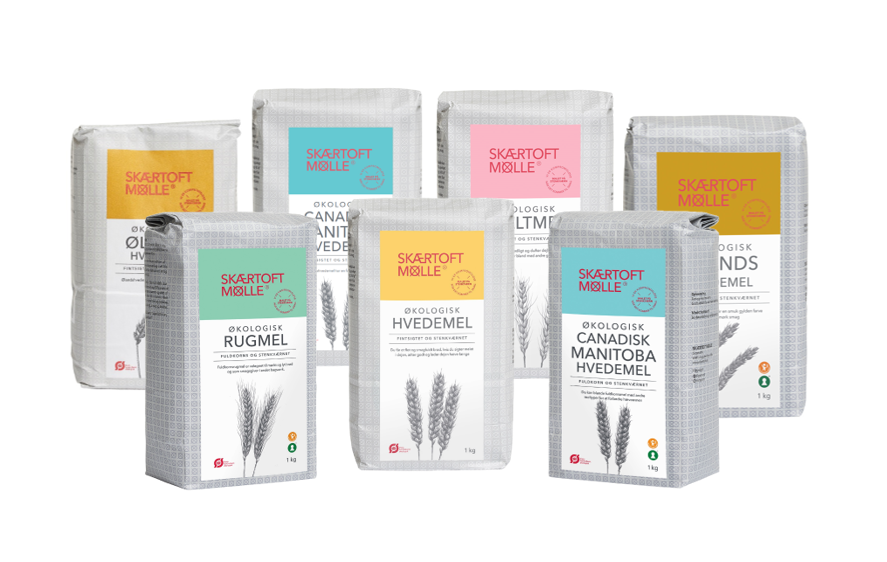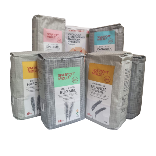 Pakken indeholder 1 kg af hver af Skærtoft Mølles mest populære produkter: