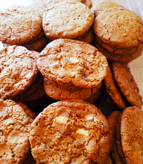 Tag dejen ud og skær den i 1 til 1,5 cm tykke skiver. Læg skiverne på et par bageplader med bagepapir og god afstand mellem skiverne, da de flyder ud. Bag dem i ovnen ved 180 °C varmluft i 12-15 min., til de er gyldne. Afkøles på rist.