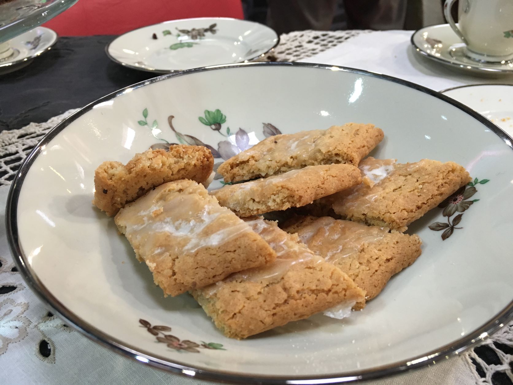 Alle ingredienser æltes godt. Rul dejen i tommelfingertykke stænger, derefter tryk dem flade. Bages ved 200 °C i 10-14 min. Rør glasur til passende konsistens og glaser stængerne
