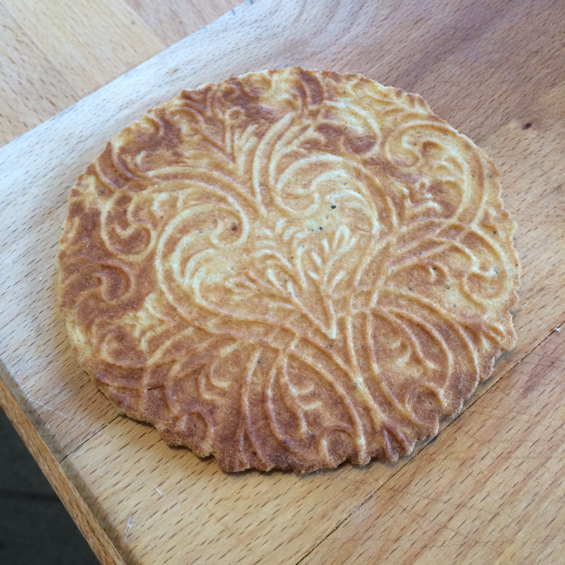 Del dejen i to, og tril til pølser. Afvej klumper à 30 g (max. 35 g). Tril dem til kugler. Sørg for at dit “Gode Råd”-jern er gennemvarmt inden du går i gang med at bage. Tryk kuglen let flad, og placer den næsten i midten af jernet, lidt ned mod lukningen. Pres låget godt ned og bag.