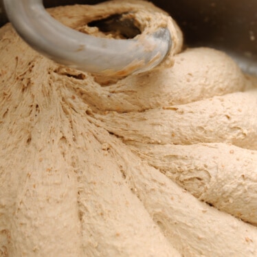 Skærtoft Mølles mesterbager Calle viser og fortæller, hvordan han bager med det stenformalede mel fra Skærtoft Mølle. Han laver denne dej på Manitobahvedemel og bruger gær som hævemiddel.
